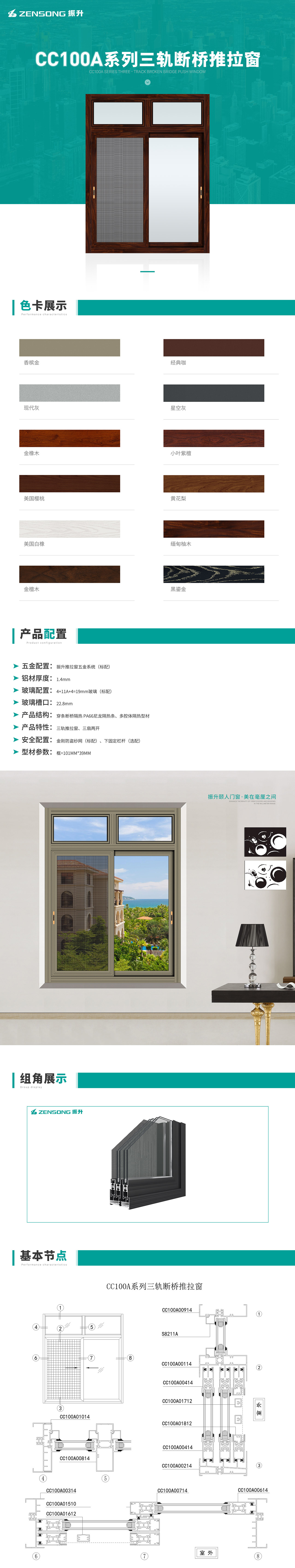 CC100A系列三轨断桥推拉窗
