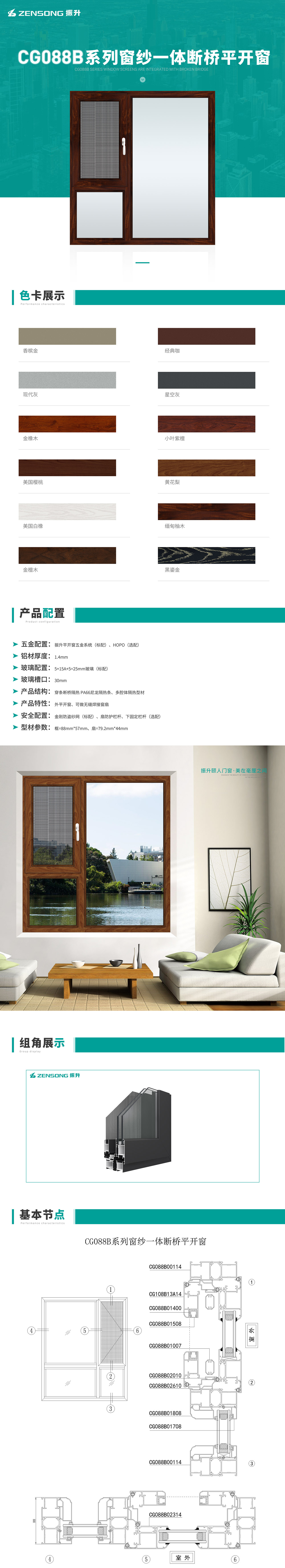 CG088B系列窗纱一体断桥平开窗