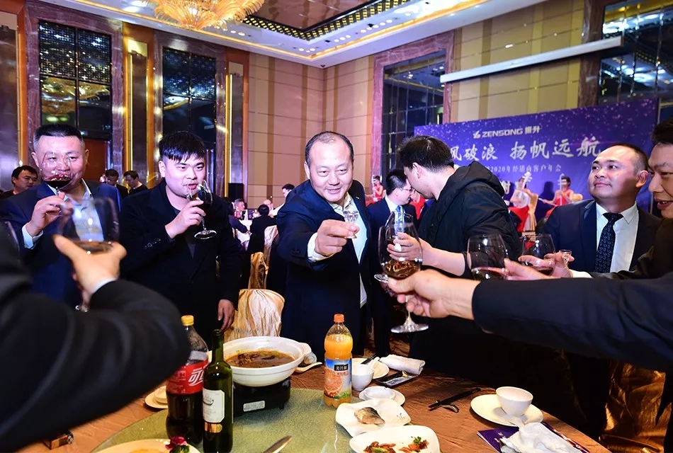 答谢晚宴上,渠道业务部总监龚总代表公司感恩致辞,感谢所有客户朋友们2019年的鼎力支持,并祝福所有客户在崭新的20年代再创佳绩。伴随着优美欢快的弦乐声,集团公司高层与参会客户举杯同庆。