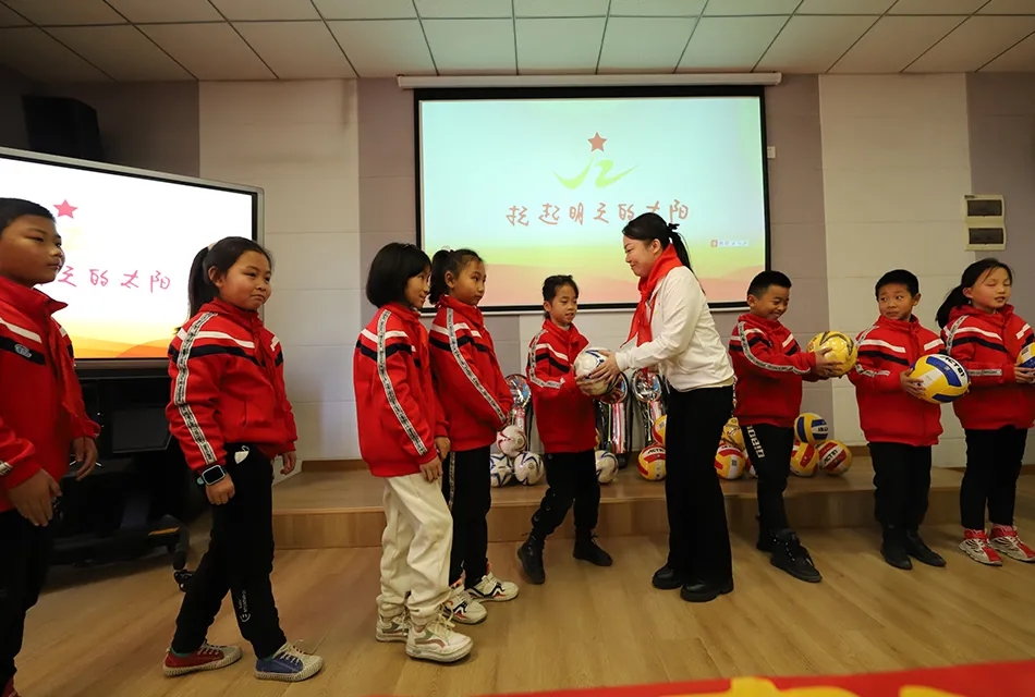 随后开展的是一场简单而有仪式感的爱心捐赠。易总代表集团公司为学校捐赠了篮球、足球、排球、羽毛球等一批体育器材,让孩子们体验各种球类,尽情享受运动的欢乐,强健体魄,茁壮成长。