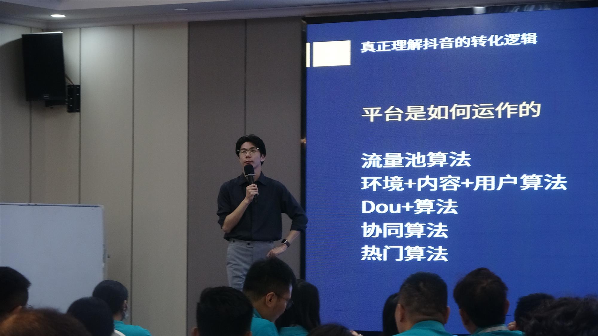 此次培训邀请了湖南东汇寰宇联合创始人、前抖音及爱奇艺内容顾问——BITTLE 莫老师作为主讲人,从“抖音账号框架搭建及其底层逻辑、短视频创作基本知识、抖音数据分析及内容调整”等几个方向展开。