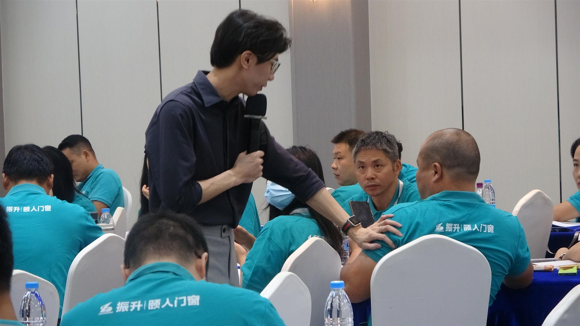 最后,振升集团副总裁黎丽辉先生为我们作此次短视频培训的结束致辞。黎总分析了颐人门窗当前的市场状况和销售模式,他表示在当前大环境下行的情况下,大家要敢于去发掘、尝试、探索新模式,思考怎样更好的去开拓市场。同时,也希望通过一天半的学习大家能学有所得、学以致用。未来,振升集团将继续与经销商们携手并进、共谱新篇。