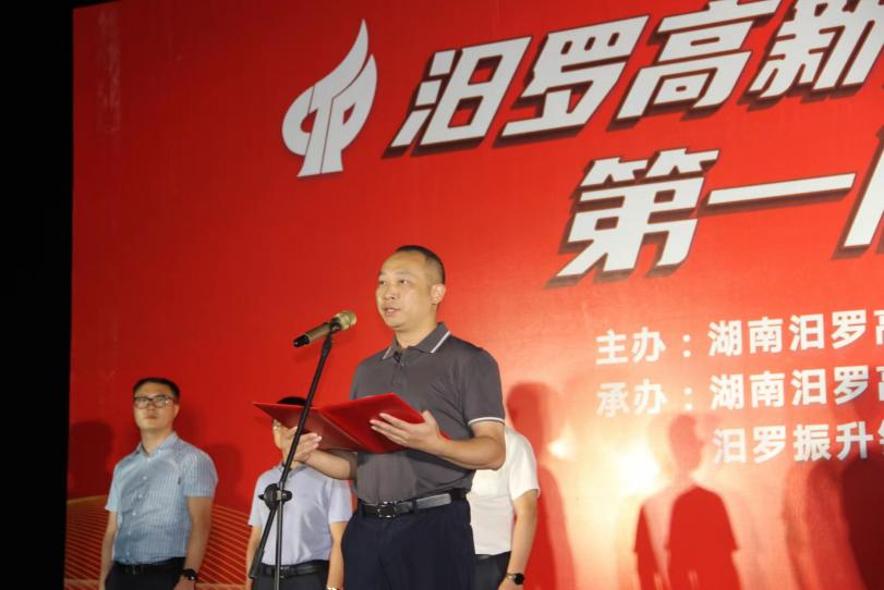 9月20日,汨罗市委副书记叶罡,汨罗高新区党工委书记何厚德,党工委副书记、管委会主任冯勇刚等领导出席比赛开幕式。长沙振升集团总裁熊猛带领公司篮球队员参赛,并在开幕式中代表企业讲话,号召全体队员团结拼搏、永不言弃,充分发扬“更快、更高、更强”和“团结、友谊、进步”的奥运精神,展现出默契协作的团队力量与奋发向上的进取姿态,并希望以活动为平台,各园区企业进一步加强交流,增进友谊,共谋发展。