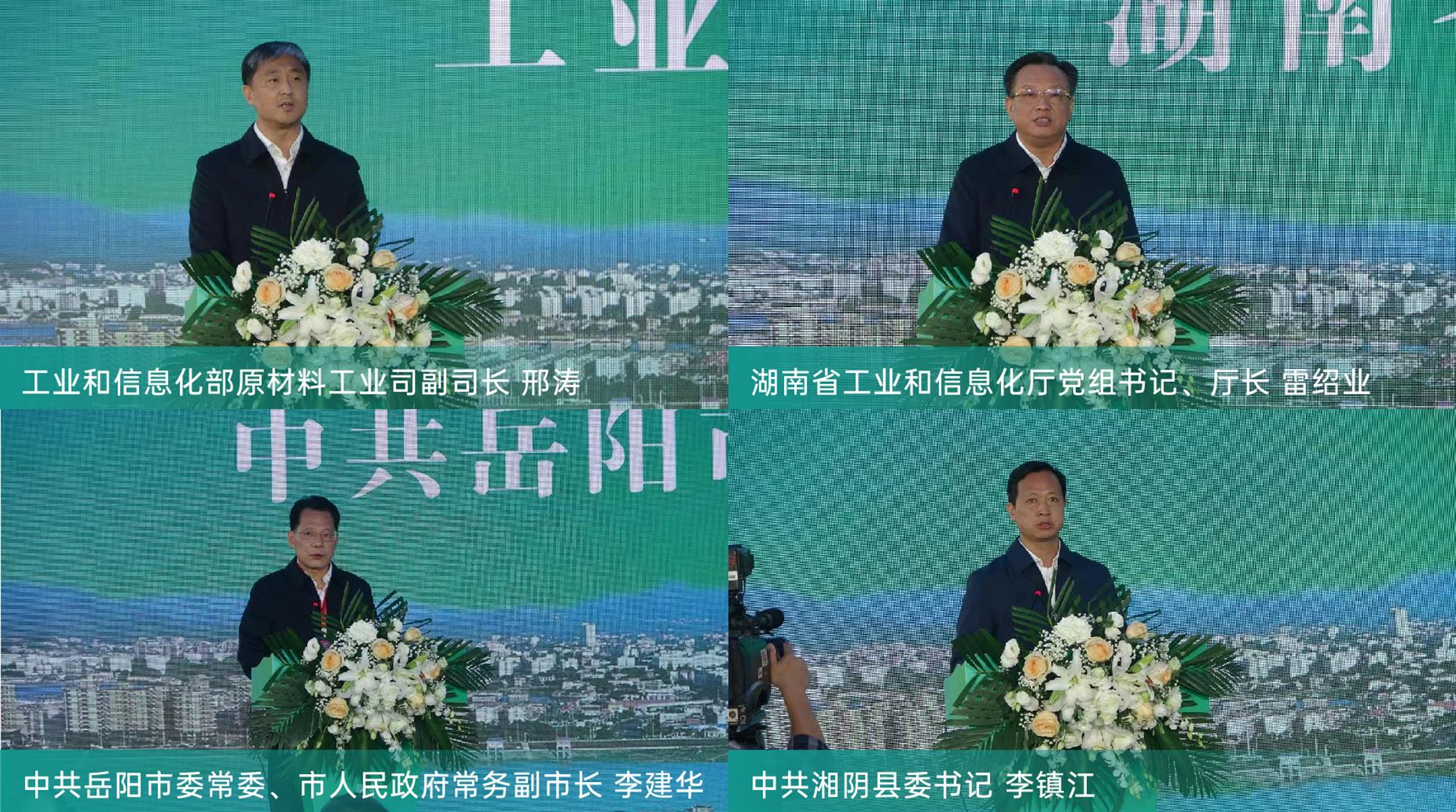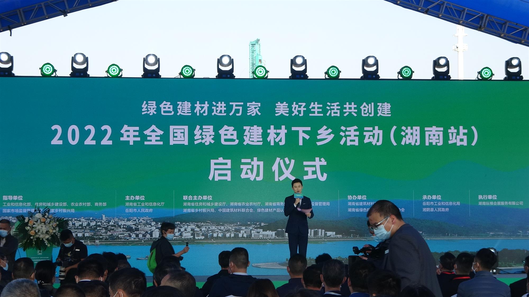 启动仪式上,各部门有关领导就绿色建材下乡活动推进的必要性、重要性进行了阐述。中共岳阳市委常委、市人民政府常务副市长李建华在启动仪式欢迎致辞中表示此次活动是促进经济社会发展全面绿色转型的有力举措。工业和信息化部原材料工业司副司长邢涛指出,开展绿色建材下乡活动,推广应用绿色建材,是建材工业绿色低碳转型的重要抓手,是提高人民生活品质的内在要求,也是美丽乡村建设的迫切需要。湖南省工信厅党组书记、厅长雷绍业表示,湖南是绿色发展理念坚定的倡导者、推动者、践行者,始终牢记“守护好一江碧水”殷殷嘱托,推动产业数字化绿色化发展,让绿色成为高质量发展的底色。中共湘阴县委书记李镇江介绍了湘阴县绿色建材产业发展情况并表示绿色建材是家居建材领域的发展趋势,前景广阔、大有可为。