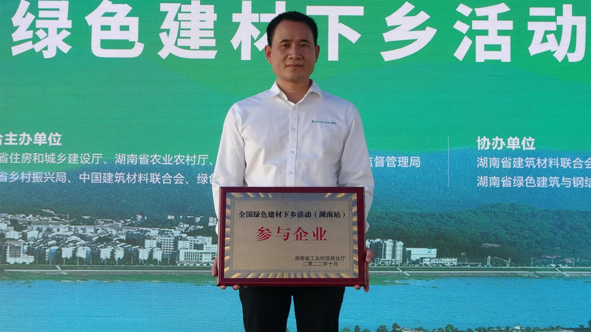 活动现场还举行了参展绿色建材企业授牌仪式,振升获得“全国绿色建材下乡活动(湖南站)参与企业”授牌。与会代表共同见证了全国绿色建材下乡活动正式启动。