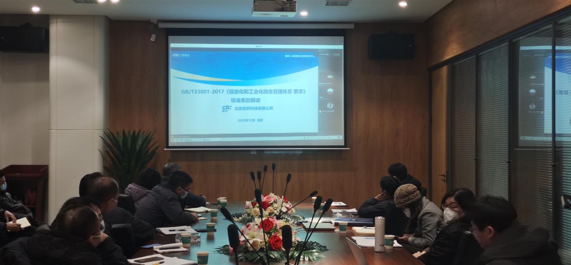 当日下午,汨罗公司中高层管理人员、“两化融合”贯标工作小组全体成员参加了由北京赛昇科技有限公司高级工程师、资深审核员李华新老师的远程授课,详细了解了GB/T23001-2017《信息化和工业化融合管理体系 要求》标准条款,以通过对标准的系统学习,圆满完成贯标工作。