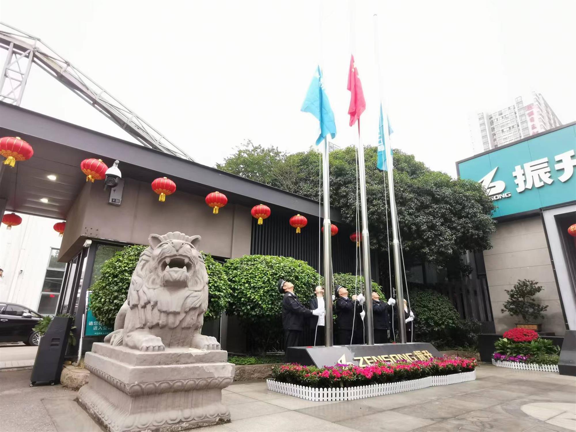 上午9点,英姿飒爽的护卫队升旗手与护旗手整装待发,昂首阔步,踏着坚定有力的步伐向新征程迈进。伴随着庄严神圣的国歌声,中华人民共和国国旗和振升集团司旗冉冉升起,迎风飘扬在集团总部与汨罗基地上空,全体参与人员整齐列队,共同向庄严的旗帜行注目礼,振作精神,坚定意志,且以奋斗向未来。