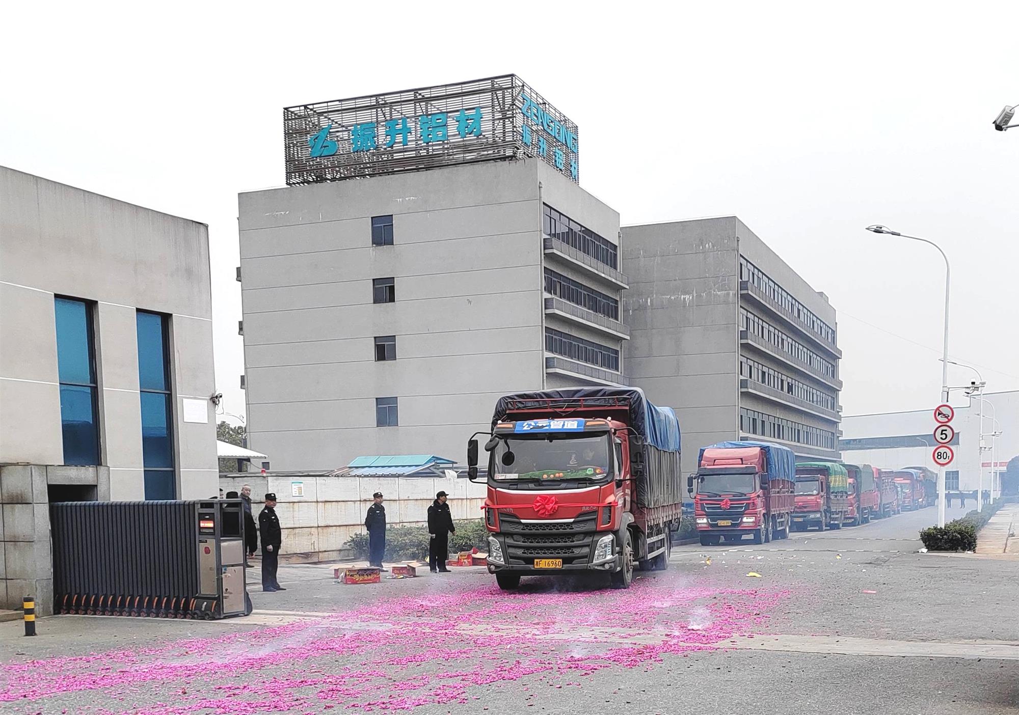 9点38分,在汨罗基地,新一年奋斗的号角已经吹响,一车车载满振升铝材的车辆缓缓驶出,实现新年首发。生产现场机器轰鸣,大家干劲十足,迅速进入“在线”状态,一帧帧拼搏的画面、一声声前进的足音、一滴滴艰辛的汗水,正化成携手奋进的昂扬乐章。