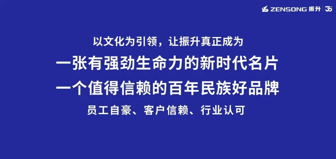 企业的根本是战略,而战略的本质就是企业文化。文化,是激活企业内生动力的关键密钥,也是引领企业获得长远生命力的鲜活源泉。以30周年再出发为契机,为进一步顺应时代的发展,支撑企业总目标的实现,振升开启了全面重塑文化体系的持续探索和多番论证。