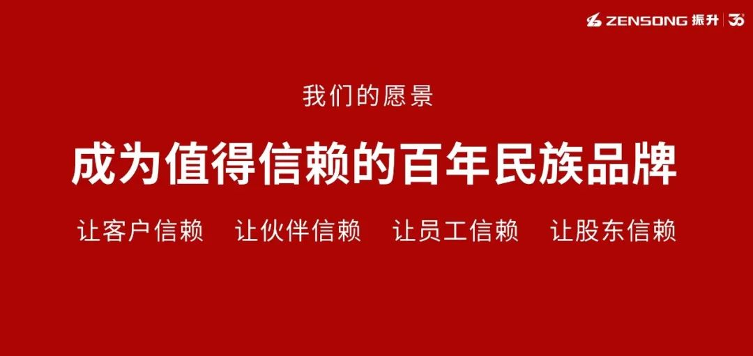 以“三十而振”为新起点,围绕“升升不息”企业文化体系这一核心,振升提炼出了“创新铸造核心、品质构筑未来”的企业使命以及“成为值得信赖的百年民族品牌”的美好愿景。