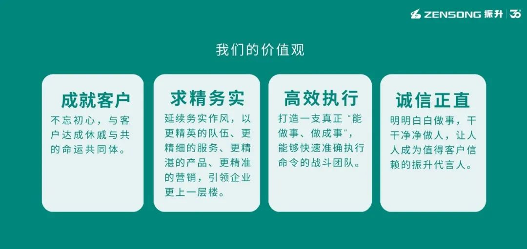 振升的价值观:“成就客户、求精务实、高效执行、诚信正直”