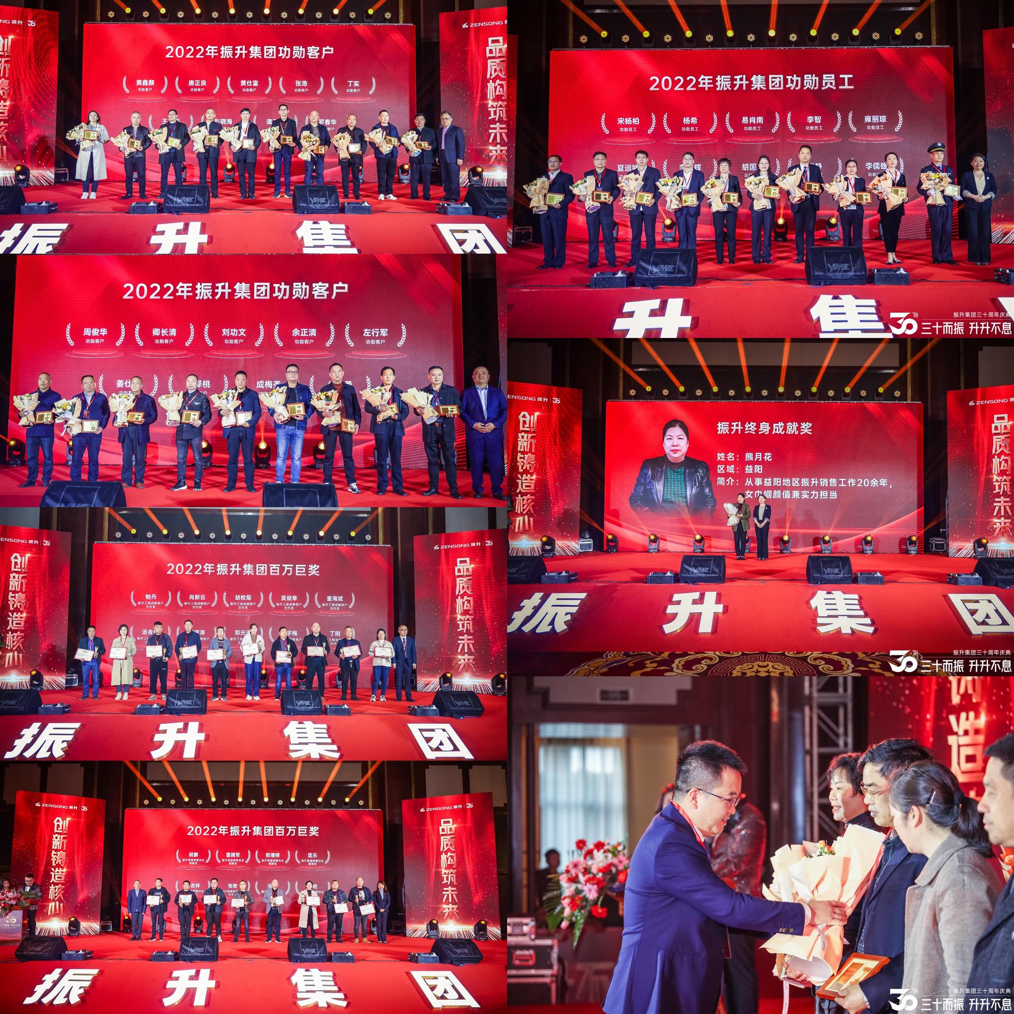 三十年的非凡成就,离不开全体振升人及经销商、工程客户们的付出及陪伴,庆典仪式上,振升高管们不仅为2022年在品牌建设、渠道开拓、客户开发、市场管理、市场投入等方面,创造了骄人业绩的优秀合作者,进行了“百万巨奖”表彰,更为过往30年发展过程中涌现出的优秀客户及员工颁发了“30周年功勋奖”、“终身成就奖”等重量级荣誉奖项,以极致的敬意,表达振升对于老客户、老员工在振升30年发展历程中做出重要贡献的感谢。