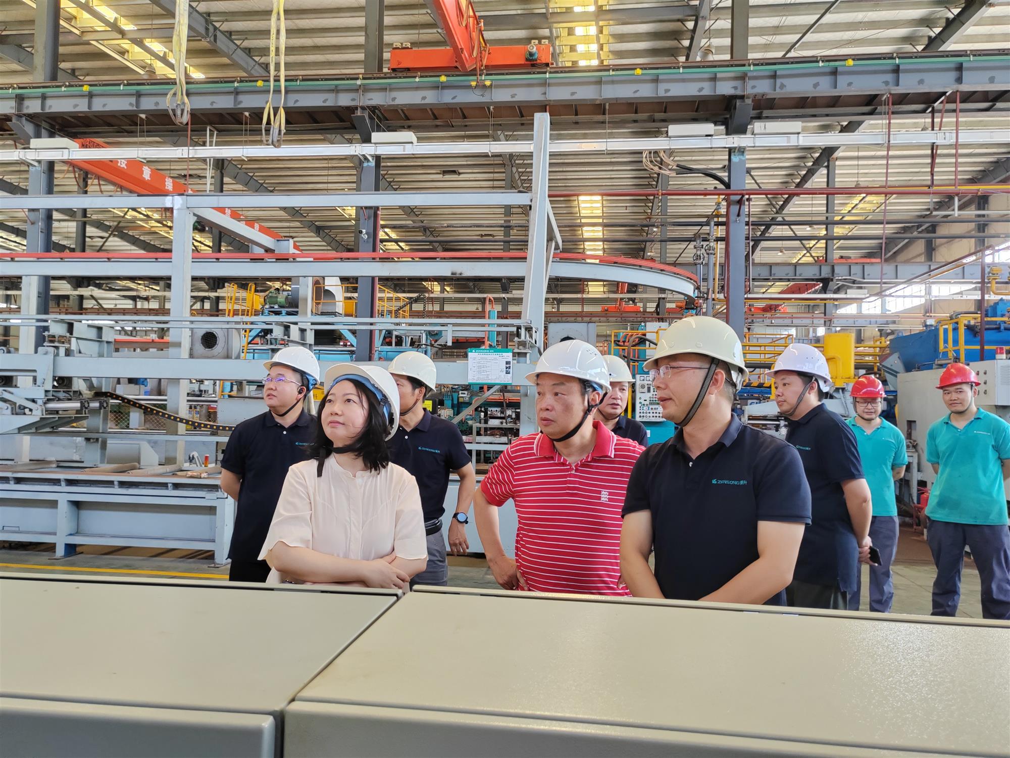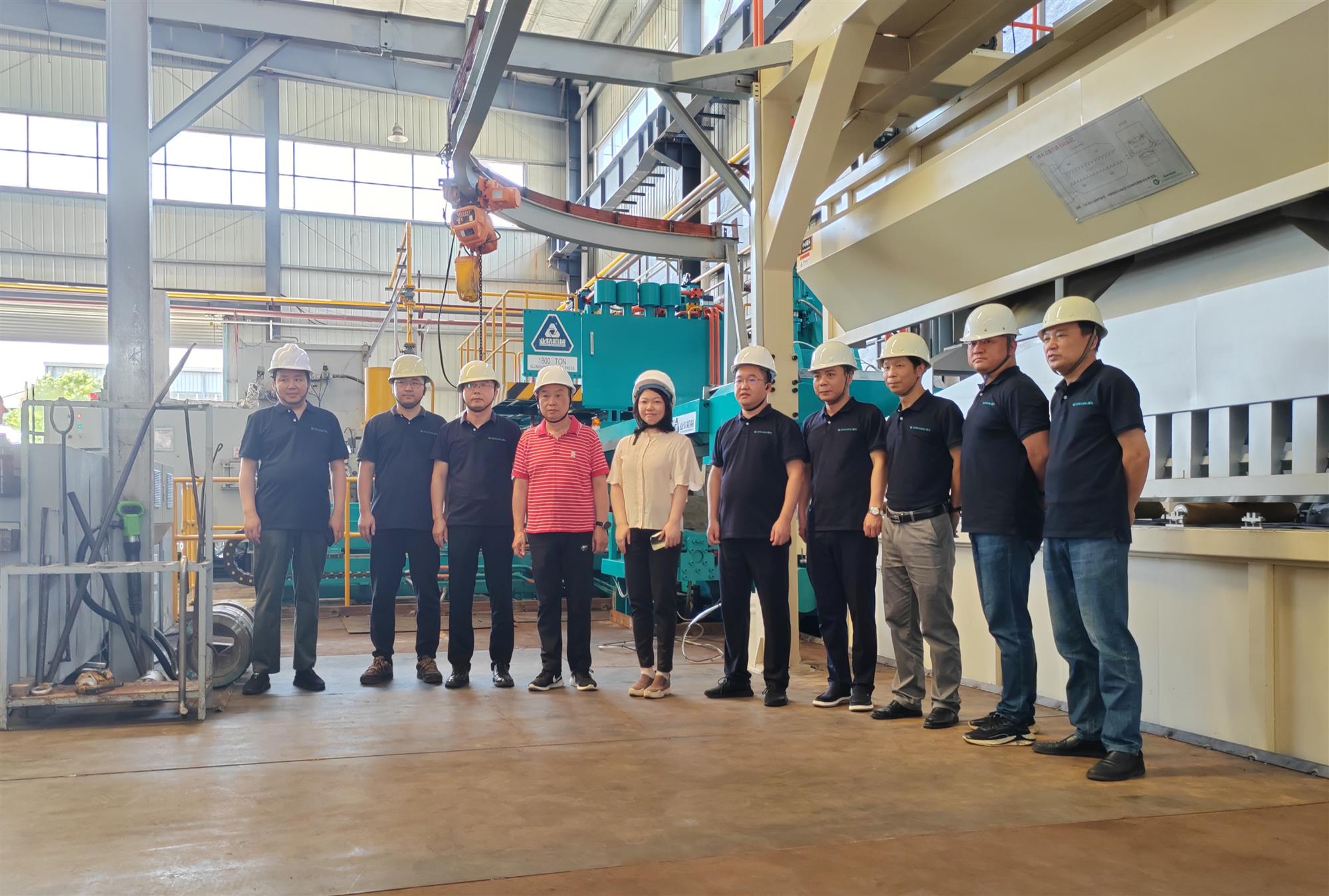 在基地领导的陪同下,集团公司董事长易思来、副董事长周小平、常务副总裁卿平萍参观了新1800吨挤压生产线,并对生产线的设计、配置、性能等方面给予了高度评价。随着易总宣布“新1800吨挤压生产线正式开机”,并按下启动键,1800吨挤压机随之轰鸣起来,第一批产品顺利出炉,这也标志振升集团生产能力和制造规模再上新高度,振升向打造我国中部地区最大铝型材生产基地的目标又迈进了一大步。