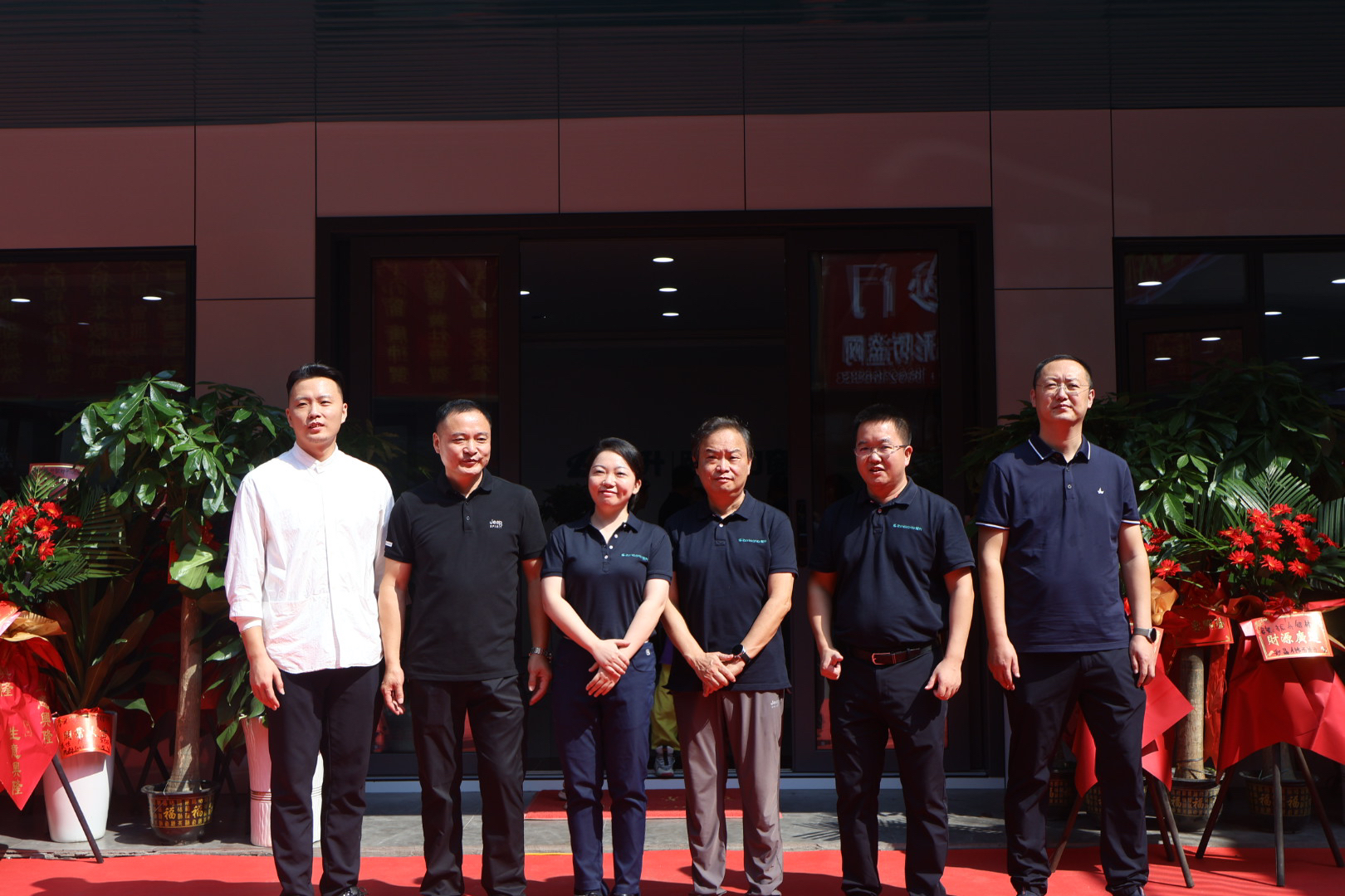 剪彩仪式,从左至右依次为平江形象店负责人周帅成、平江经销商周俊华、振升集团董事长易思来、副董事长周小平、常务副总裁卿平萍、副总裁黎丽辉