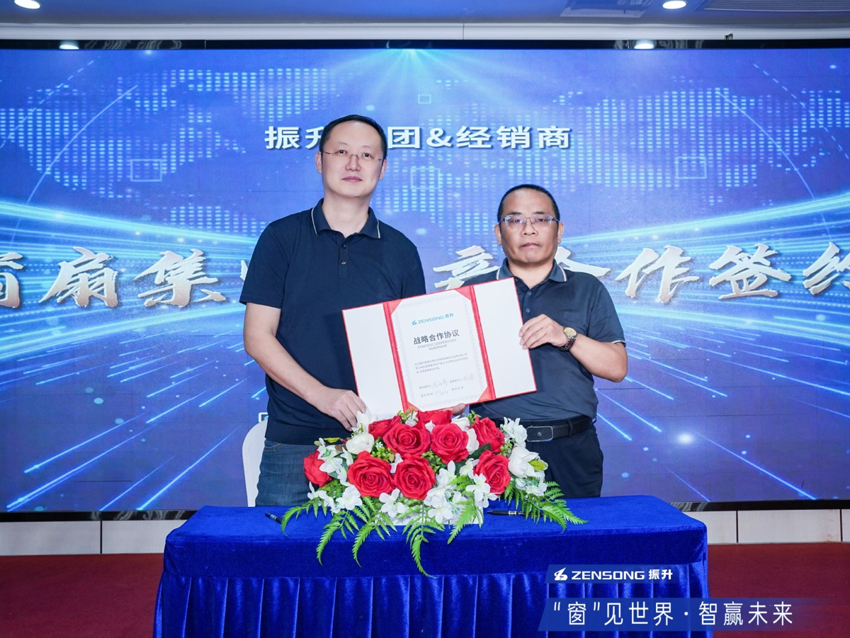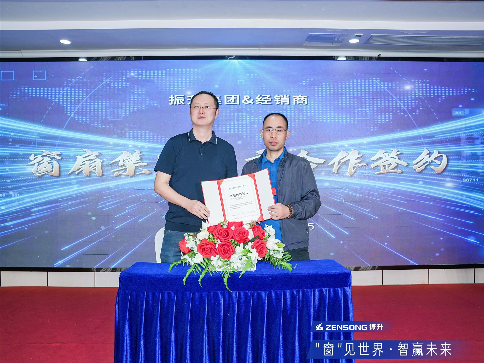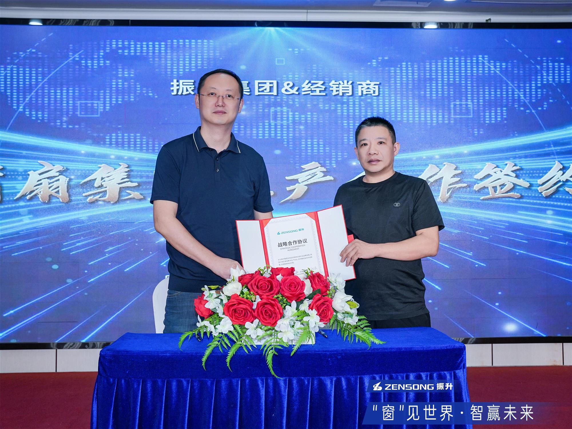 活动尾声,振升集团常务副总裁卿平萍作为代表分别与深圳好博窗控湖南运营中心负责人施利、库勒五金董事长丁振伟完成了战略合作伙伴协议的签署,有力推进了供应链体系的优化整合。振升集团副总裁黎丽辉作为代表与邵阳地区经销商罗帅、株洲醴陵地区经销商周先波、岳阳地区经销商彭晓盾现场签订窗扇集中生产合作协议,深化了区域合作的紧密联系,为后续的协同共赢奠定了坚实基石。