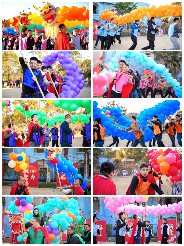 “龙”是中华民族吉祥、尊贵、勇猛的象征,2025年新春团拜活动首先以“龙耀振升”趣味团建项目拉开序幕。各部门员工共分为十个队,在规定的时间里用自己的双手、用五颜六色的气球制作出各队心目中最完美且创意爆棚的泡泡龙,并融入团队文化、企业文化等进行舞龙及龙旗阵表演练习,一招一式尽展团队风采。