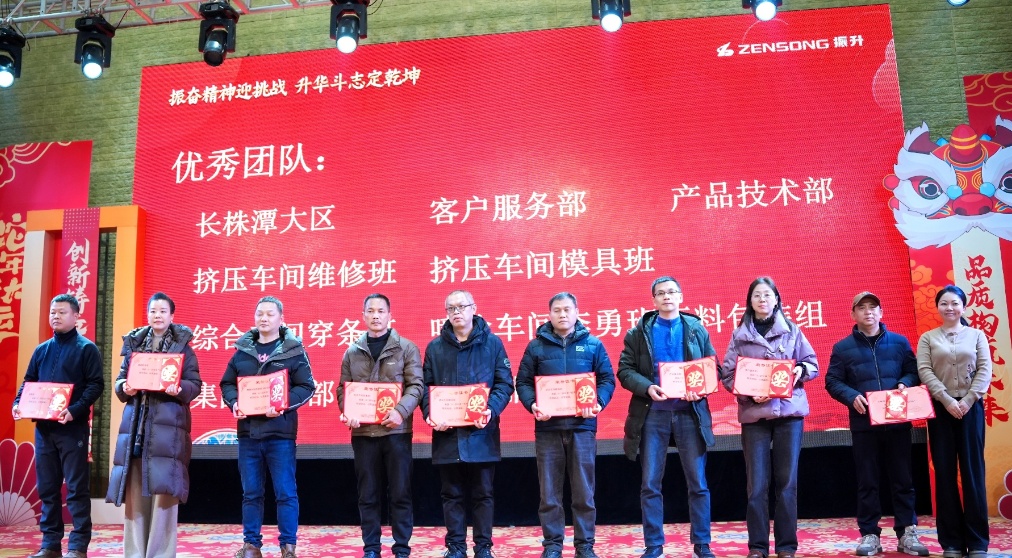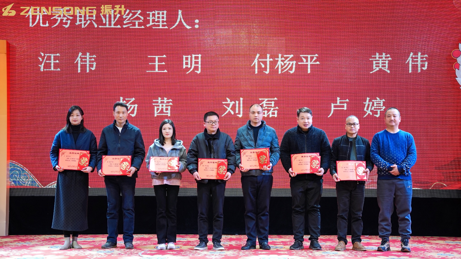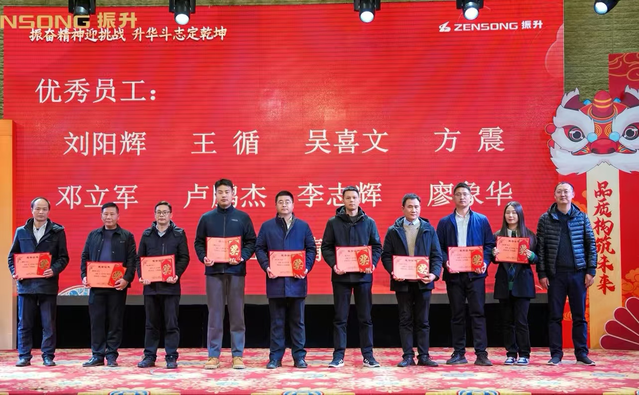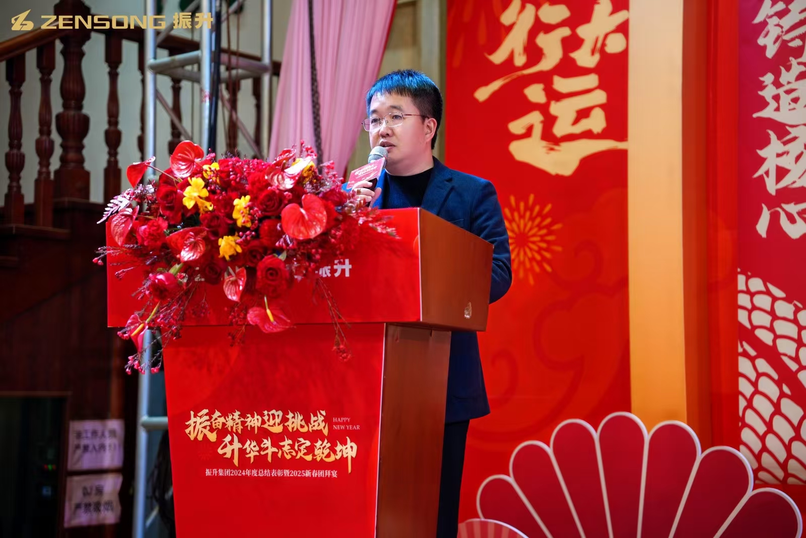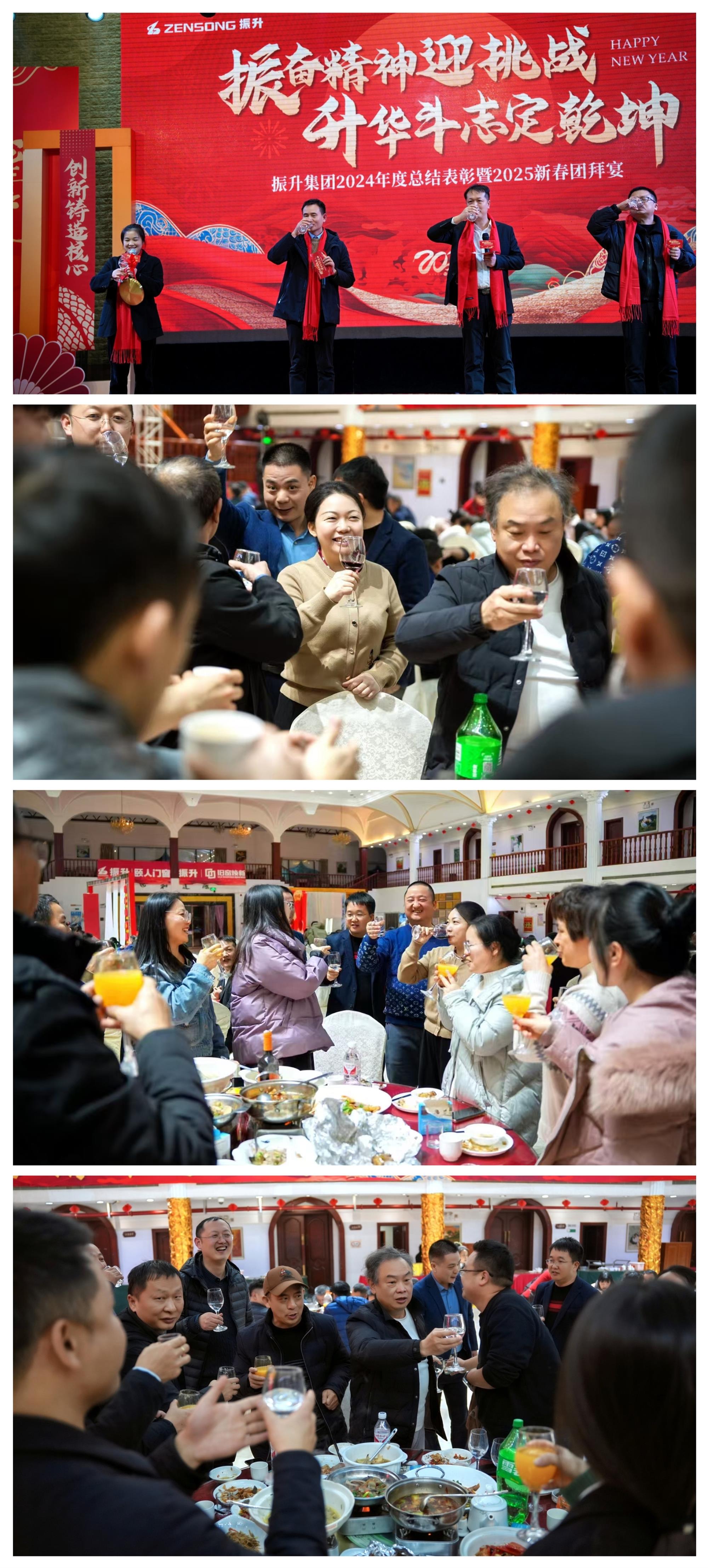 最后,在这团圆、喜庆、祥和的时刻,优秀员工、优秀团队代表登台以三句半的形式为全体员工致祝酒词,大家共同举杯,为过往一年的辛勤汗水与成长收获,为即将踏上的2025年辉煌新程,为振升集团的蓬勃发展、蒸蒸日上而干杯!全体振升人将牢记“创新铸造核心、品质构筑未来”的使命担当,在时代的呼啸中振奋精神迎挑战,升华斗志定乾坤。