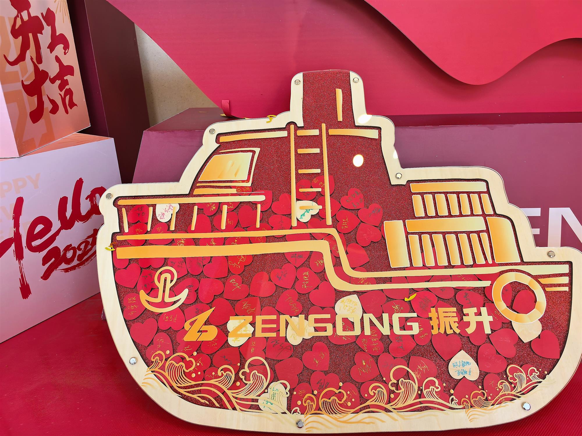 随后,每位员工将写有自己姓名与祝福的爱心木片投入到象征公司团结与奋进的帆船中,将每一份力量汇聚成汹涌浪潮,这也寓意着所有振升人将再次紧紧相依、并肩作战,向着新目标,全速启航!