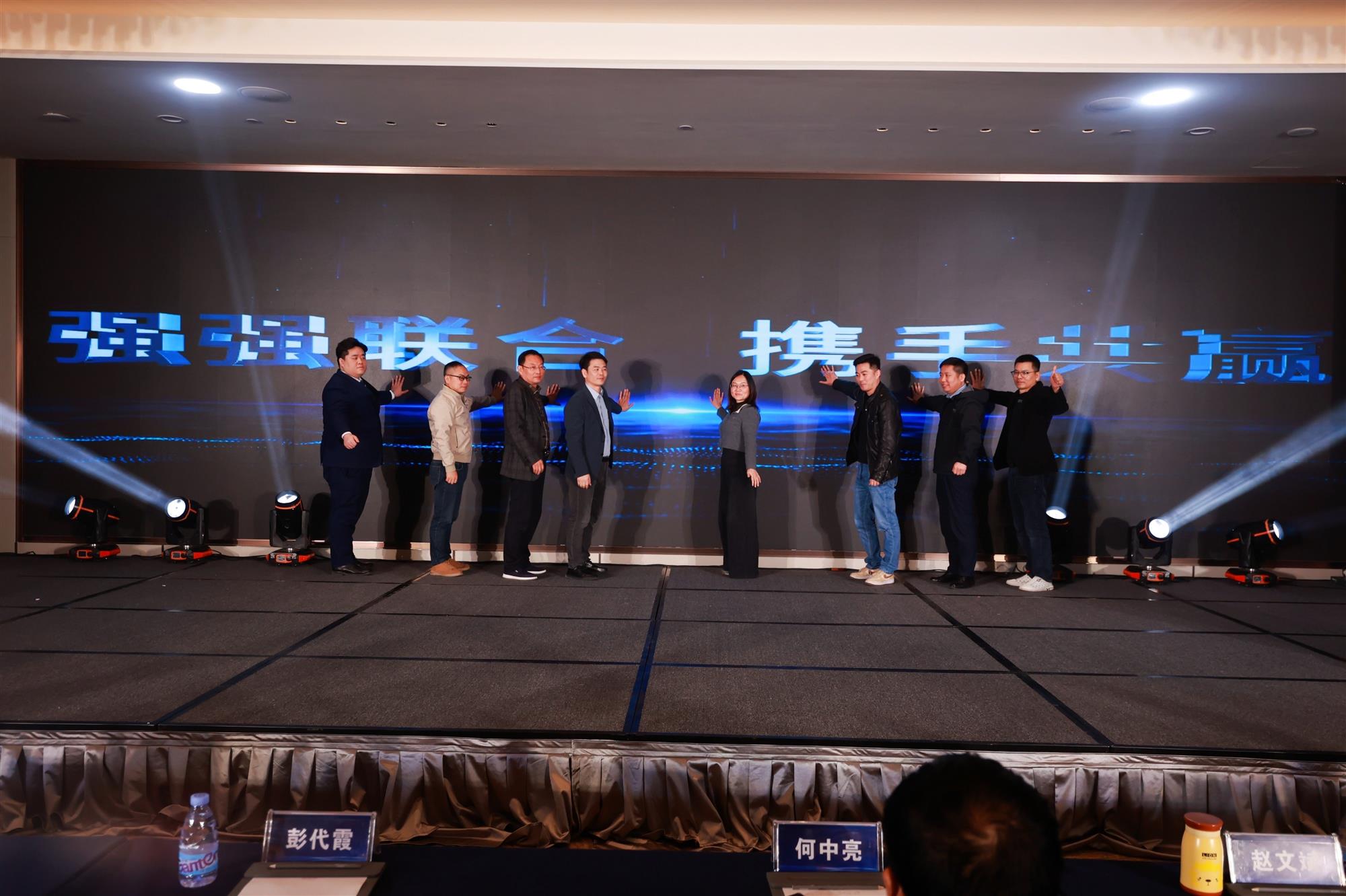 新品发布启动仪式将全场凝聚成信念共同体。伯哲门窗董事长彭总、振升集团省外业务部总监汪总、荆门市昕荣建材科技有限公司董事长何总、江阴海达胶条江总、融海隔热条张总、南玻集团孟总、希美克五金黄总、诺托五金林总八位代表手触大屏,“强强联合,携手共赢”八个字在光影中绽放,成为行业同仁"同心筑梦"的具象表达。当全场镜头定格在那坚定比赞的手上,人们读懂了更深层的含义:真正的商业文明,永远建立在信任与共赢的基石之上。